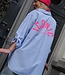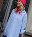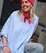 Oversized gestreepte blouse met "ICONIC" tekst op de voor- én achterkant. Trendy model met knoopsluiting en relaxte fit. One size, draagbaar t/m maat 42. Dé statement blouse voor een effortless fashion look.
