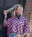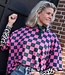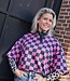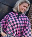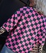 Groen-roze geblokte top met korte mouwen en ronde hals. Een echte eyecatcher die elke outfit hip & trendy maakt!