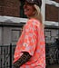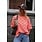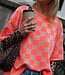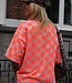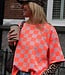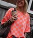 Roze-oranje geblokte top met korte mouwen en ronde hals. Een echte eyecatcher die elke outfit hip & trendy maakt!