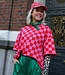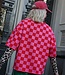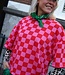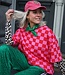 Rood-roze oversized geblokte top met korte mouwen en ronde hals. Een echte eyecatcher die elke outfit hip & trendy maakt!