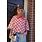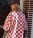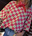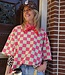 Groen-roze geblokte top met korte mouwen en ronde hals. Een echte eyecatcher die elke outfit hip & trendy maakt!