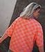 Roze-oranje geblokte top met korte mouwen en ronde hals. Een echte eyecatcher die elke outfit hip & trendy maakt!