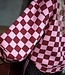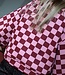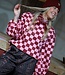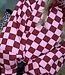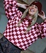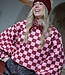 Weer zo'n eyecatcher, wij zijn er gek op! Deze bugundy roze geblokte trui wil je toch hebben?! De trui heeft een oversized pasvorm, lange ballon mouwen en een ronde hals. Maak de look compleet met het roze teddy gilet en burgundy bandana.