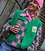 Deze trui wil je hebben!Zo heerlijk zacht en een knallende kleurencombinatie van groen en roze. De look helemaal compleet maken? Combineer dan met gilet smiley groen voor de complete outfit!
