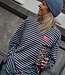 STRIPES STRIPES STRIPES! Ooooohh, weer zo'n leuke streep top! Deze top is lekker oversized, heeft lange uitlopende mouwen en een embleem op de voorkant. Shop jouw favoriete kleurencombinatie!
