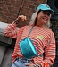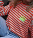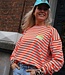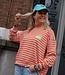 MUSTHAVE TOP! Deze top heeft net even een extraatje door het vrolijke embleem met "BISOUS" op de voorkant. De top heeft een oversized pasvorm, lange aansluitende mouwen en een ronde hals.