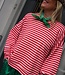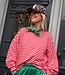 MUSTHAVE TOP! Oversized fit, ronde hals, lange aansluitende ballonmouwen en een boord aan de onderkant. Combineer met een teddy gilet en outfit is helemaal on trend!