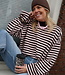 MUSTHAVE TOP! Deze top vloog al de winkels uit, want hoe mooi zijn deze kleuren?! De top heeft een oversized pasvorm, ronde hals en uitlopende mouwen. Ook super leuk in combinatie met dit bruine gilet.