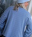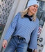 MUSTHAVE TOP! Deze gestreepte top in het blauw heeft uitlopende mouwen en een ronde hals. Onesize, hip en trendy. Combineer met een gilet & bandana en jij bent ready to go!
