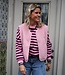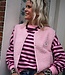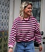 Trendy gestreepte dames longsleeve met blauwe strepen, boord aan onderkant en mouwuiteinden. De trui heeft lange mouwen, ronde hals en oversized fit.