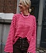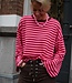 MUSTHAVE TOP! Deze top vloog al de winkels uit, want hoe mooi zijn deze kleuren?! De top heeft een oversized pasvorm, ronde hals en uitlopende mouwen.