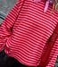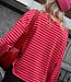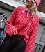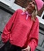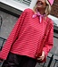 MUSTHAVE TOP! Gestreepte top in het rood roze. De top heeft een oversized fit, lange mouwen en ronde hals. Combineer met de roze muts voor de perfecte look!