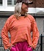 Deze gestreepte top in het roze en groen heeft een oversized pasvorm met uitlopende mouwen en ronde hals. Onesize, draagbaar van maat 36 t/m 42. Hip, comfy en trendy!