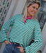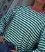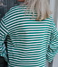 Deze gestreepte top in het groen en wit met fuchsia boord heeft een oversized pasvorm met uitlopende mouwen en ronde hals. Onesize, draagbaar van maat 36 t/m 42. Hip, comfy en trendy!