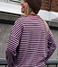 Deze gestreepte top in het paars en bruin met fuchsia boord heeft een oversized pasvorm met uitlopende mouwen en ronde hals. Onesize, draagbaar van maat 36 t/m 42. Hip, comfy en trendy!