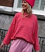 Deze gestreepte top in het roze en geel met fuchsia boord heeft een oversized pasvorm met uitlopende mouwen en ronde hals. Onesize, draagbaar van maat 36 t/m 42. Hip, comfy en trendy!