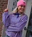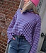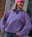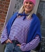 Deze gestreepte top in roze en blauw heeft een oversized pasvorm met uitlopende mouwen en ronde hals. Onesize, draagbaar van maat 36 t/m 42. Hip, comfy en trendy!