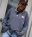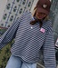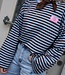 MUSTHAVE STATEMENT PIECE!Gestreepte bruin-blauwe top met "SELF LOVE CLUB" embleem. De top heeft een ronde hals, oversized fit en lange uitlopende mouwen.