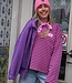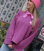 MUSTHAVE STATEMENT PIECE!Gestreepte roze-paarse top met "SELF LOVE CLUB"  embleem. De top heeft een ronde hals, oversized fit en lange uitlopende mouwen.
