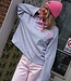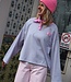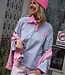 MUSTHAVE STATEMENT PIECE!Gestreepte roze-blauwe top met "SELF LOVE CLUB" embleem. De top heeft een ronde hals, oversized fit en lange uitlopende mouwen.