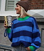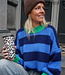 Deze trui is een echte kleurrijke eyecatcher!De trui heeft lange mouwen, een ronde hals en een oversized pasvorm. Combineer met het groene teddy gilet voor net dat extraatje!