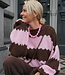 Musthave trui voor nu! Een gebreide trui met een roezel aan het uiteinde van de mouwen. Shop nu in deze prachtige kleurencombinatie.