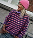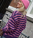 Weer zo'n prachtige kleurencombinatie heeft dit vestje. Een echte musthave voor nu! Draag je het liever als trui? Draai het vestje dan om en draag de knopen op de achterkant. LOVE IT! Maak de look helemaal compleet met de roze smiley muts en lila bandana.