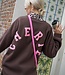 CHERIE! deze oversized trui is lekker warm en heeft de tekst "CHERIE" op de achterkant. Geef de trui een extraatje door er de leo top met col onder te dragen.