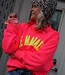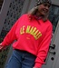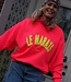 Een oversized sweater met de tekst "LE MARAIS" op de achterkant. De sweater is met fleece gevoerd, heeft een ronde hals, oversized pasvorm en lange mouwen. Hip en comfortabel! Combineer met de liv top roze geel voor een extra touch!