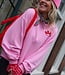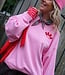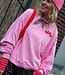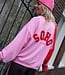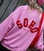SOHO!♡ Een heerlijke oversized sweater met SOHO op de voor en achterkant. De trui heeft lange mouwen, een loose fit en een ronde hals. Maak de outfit af en draag de gestreepte top rood roze eronder voor een extra touch!