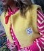 HELLO SPRING! Geel teddy gilet met embleem "FLY TO THE MOON". Oversized fit, onesize, comfy en een echte fashion musthave.