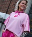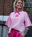 Roze “AMOUR” top met coole zijstreep en frontprint. Casual, stretchy en perfect voor een hippe & trendy look!